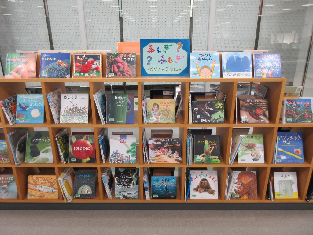 子ども展示は、「ふしぎふしぎ~かがくのえほん~」と「しゃしんえほん」です。