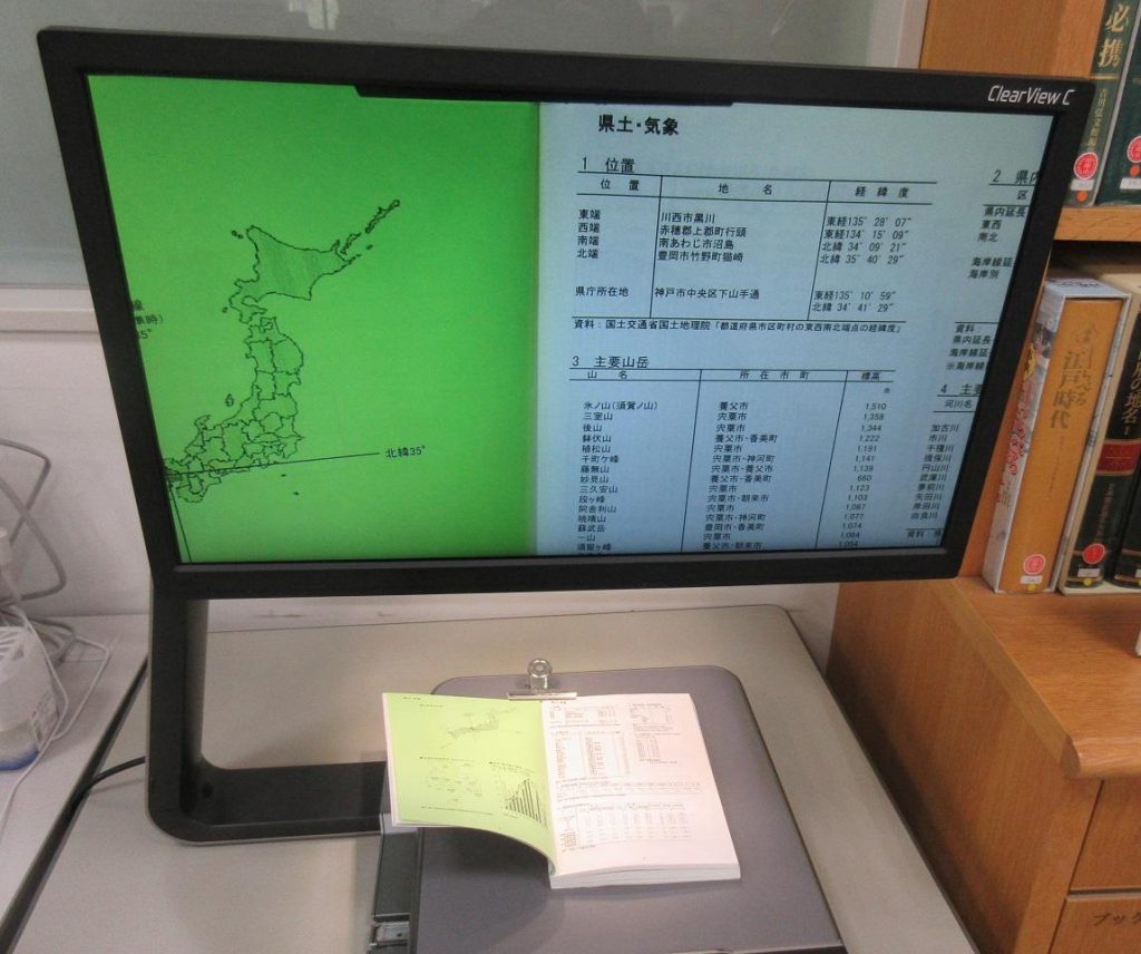 図書館利用者の方から、据置型拡大読書器を寄贈いただきました。小さな文字が読みにくい方のための、活字を拡大して読むことができる読書器です。カウンター横に設置していますので、わからないことがあれば職員にお尋ねください。