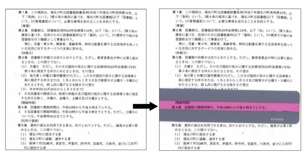 読みたい行だけに視点を集中させることができるので、視力の衰えや読むことに集中しづらい…といった読みづらさをサポートしてくれる道具です。貸出窓口近くに設置しております。図書館内でご利用ください。